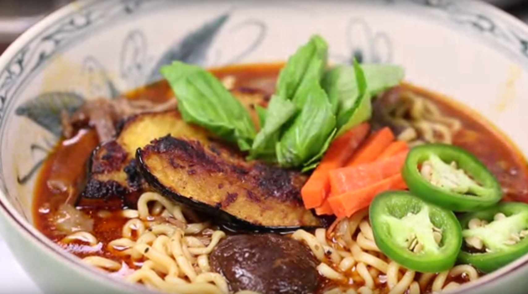 Ramen au Porc caramélisé et sa courge poivrée grillée